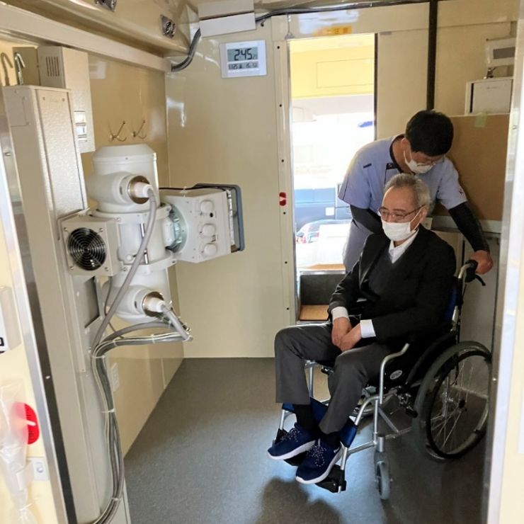 当財団では、介護施設などのほかに市町村主体で実施する住民検診へも、車いす利用者の方が来られる日にリフト付検診車で配車してほしいなどの要望を受けることがあり、可能 な限りご要望に応えられるよう努めております。
