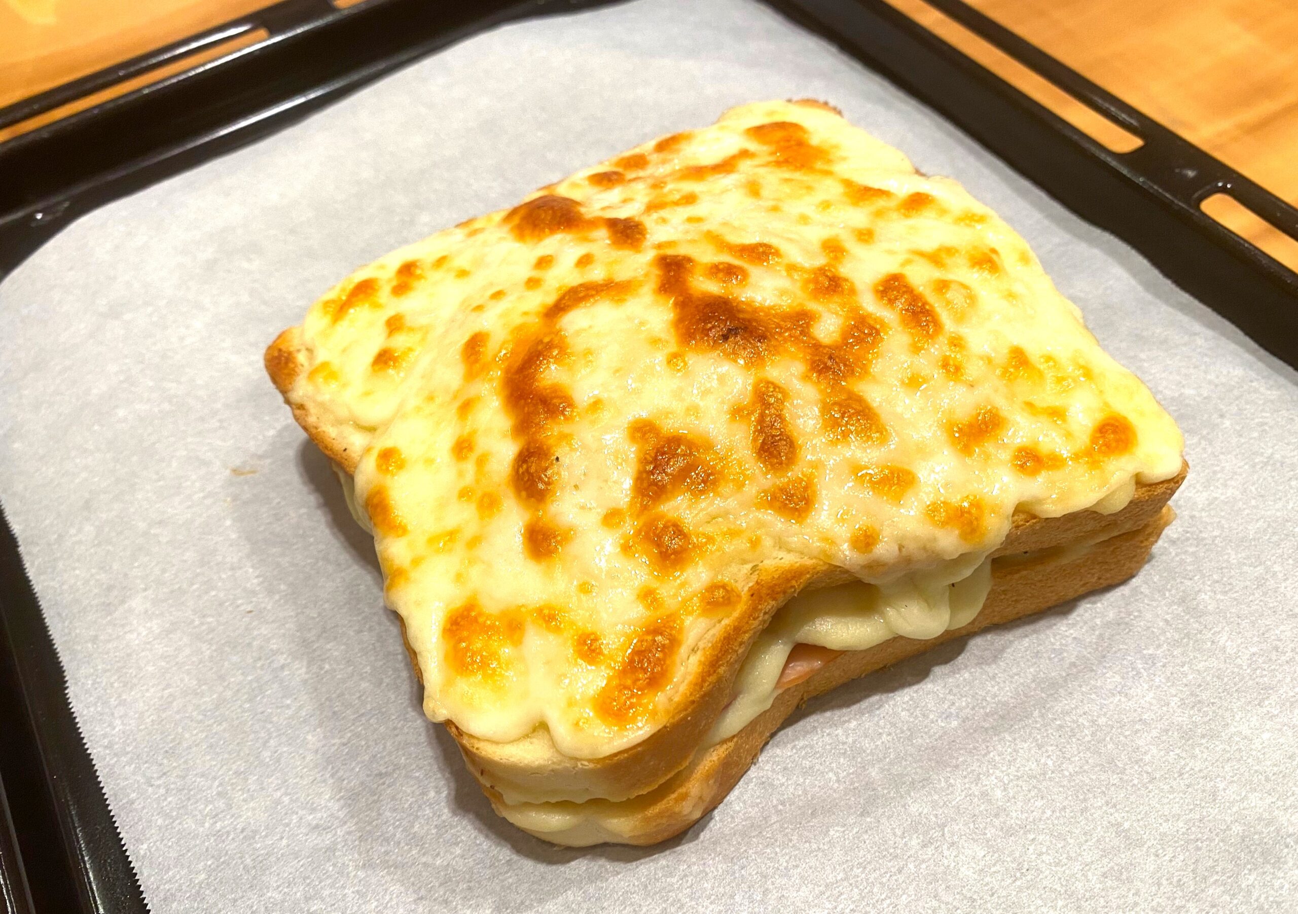サンドされたパンの上に残りのホワイトソースととろけるチーズをのせる。