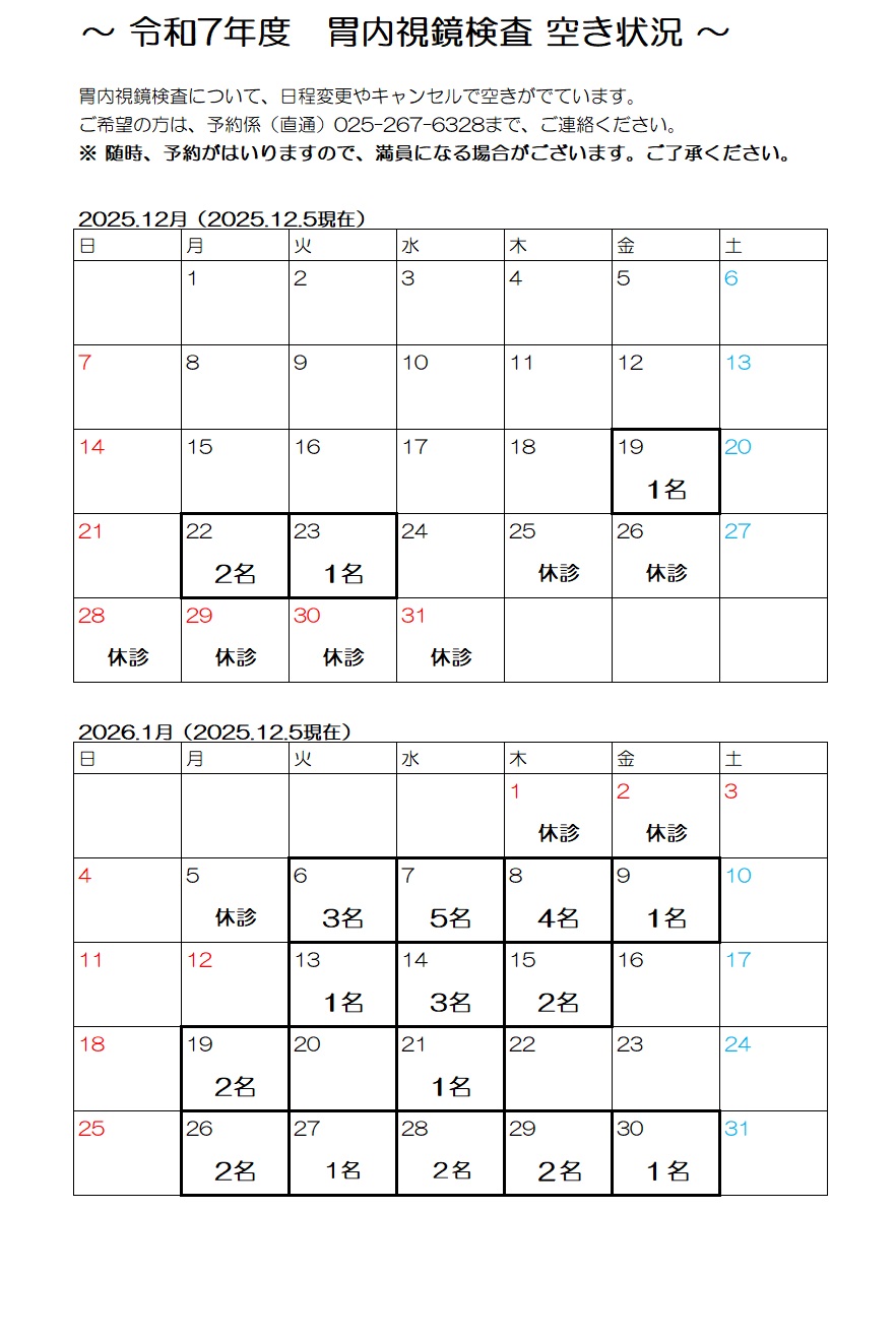 胃内視鏡検査 空き状況について