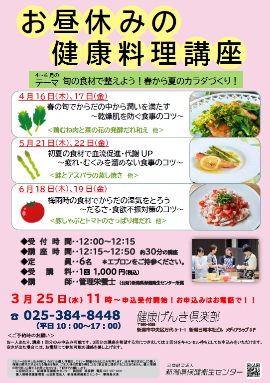 お昼休みの健康料理講座(2026年4月~6月)のご案内